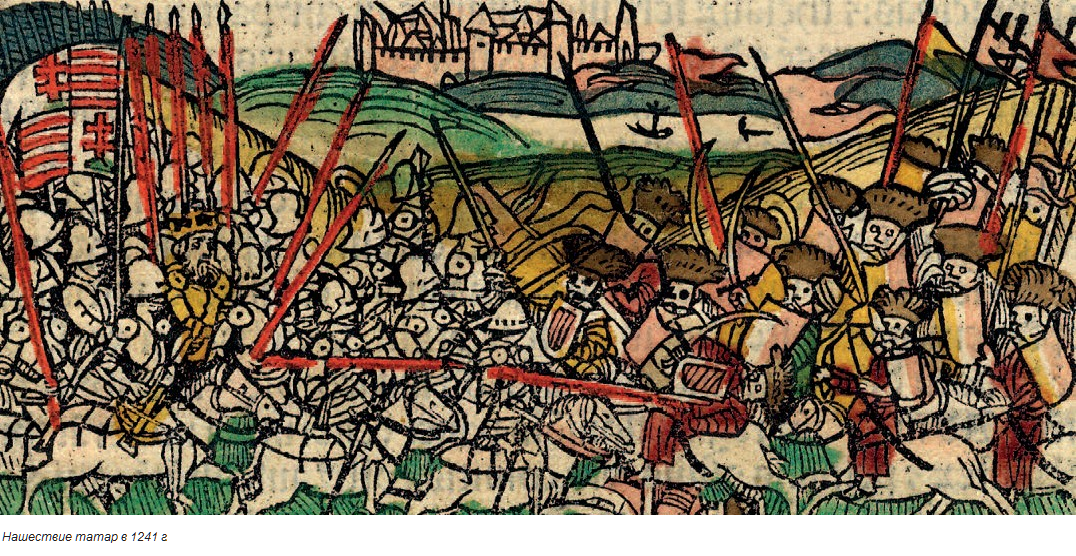 Сын Андраша II – Бела IV попытался вернуть пожалованные отцом владения и восстановить авторитет королевской власти. Во время его правления, в 1241 году над Венгерским Королевством нависла превзошедшая все прежние бедствия угроза с Востока. Движущиеся из Внутренней Азии на запад монгольские племена одно за другим завоёвывали русские княжества. Зимой 1241 года татары приблизились к северным и восточным границам страны. Весной они уже достигли северной части Венгерской низменности и в битве при Мухи нанесли тяжкое поражение войскам Белы IV. Зимой 1241–1242 годов они переправились и через Дунай и разорили Задунайский край. Беда усугубилась тем, что австрийский герцог Фридрих, воспользовавшись затруднительным положением Белы IV, оккупировал несколько областей Западной Венгрии, затем вынудил венгерского короля признать свои территориальные приобретения.